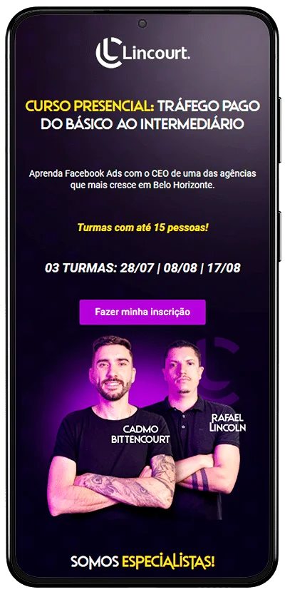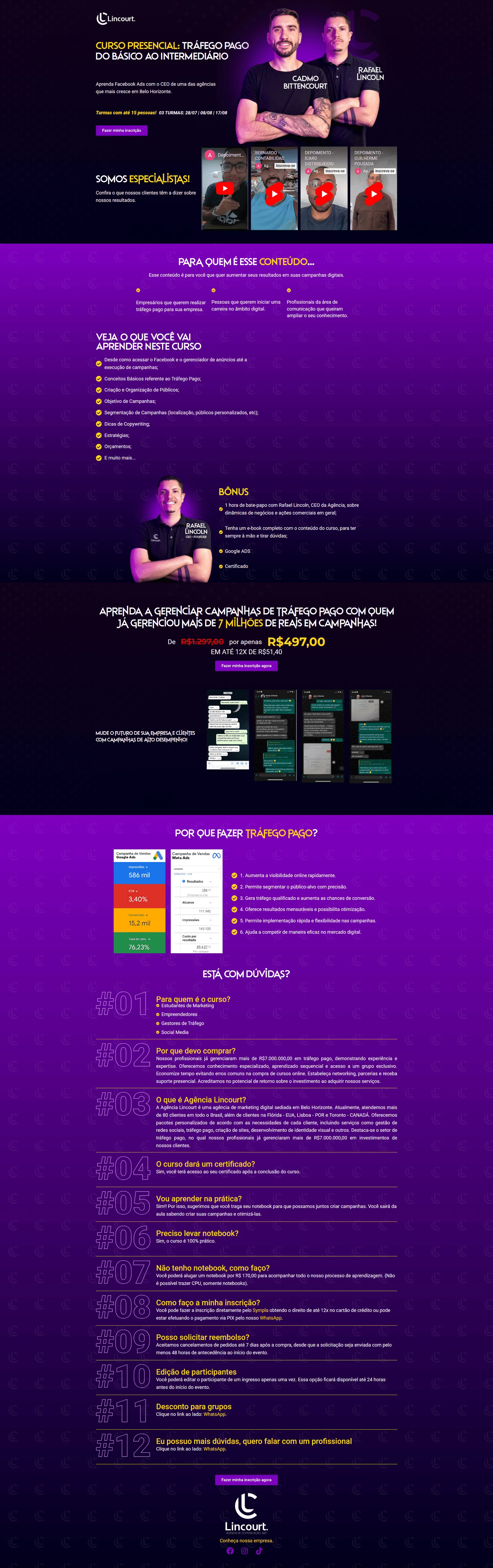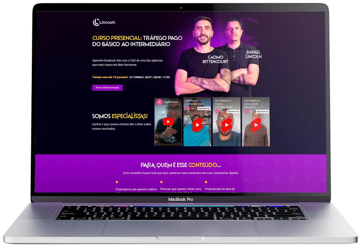 Página de vendas desenvolvida para divulgação do curso de Tráfego Pago presencial oferecido pela agência.