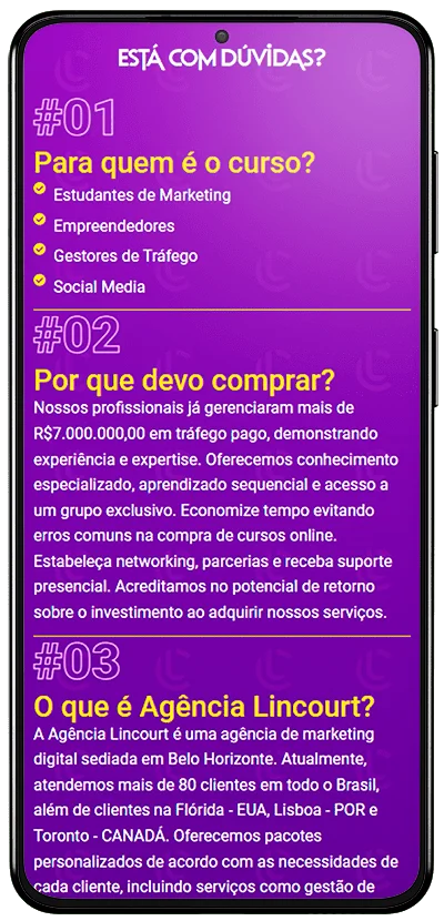 A Agência Lincourt foi criada em 2020, em meio à pandemia, por Rafael Lincoln e Cádmo Bittencourt, amigos que compartilhavam o sonho de conquistar o mundo virtual, mas não para si, e sim para os mais de 150 clientes que contrataram os mais variados serviços voltados para o marketing e comunicação digital.